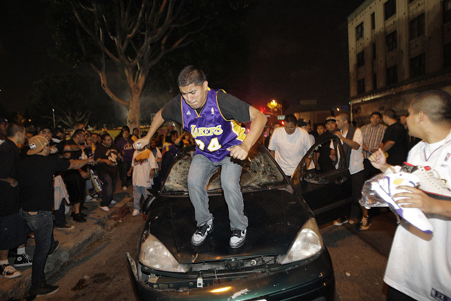 在洛杉矶湖人队15日夺得本年度NBA总冠军后,洛杉矶球迷涌上街头欢庆胜利,但在庆祝过程中偶发暴力事件,警方逮捕了至少8人。