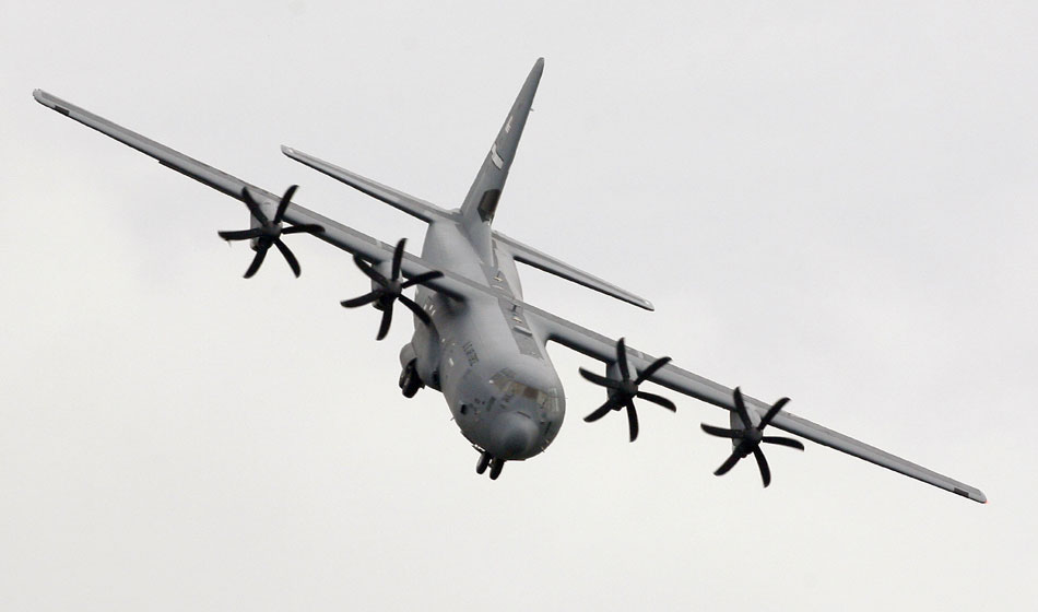 图为美军C-130J大力神运输机进行飞行表演。