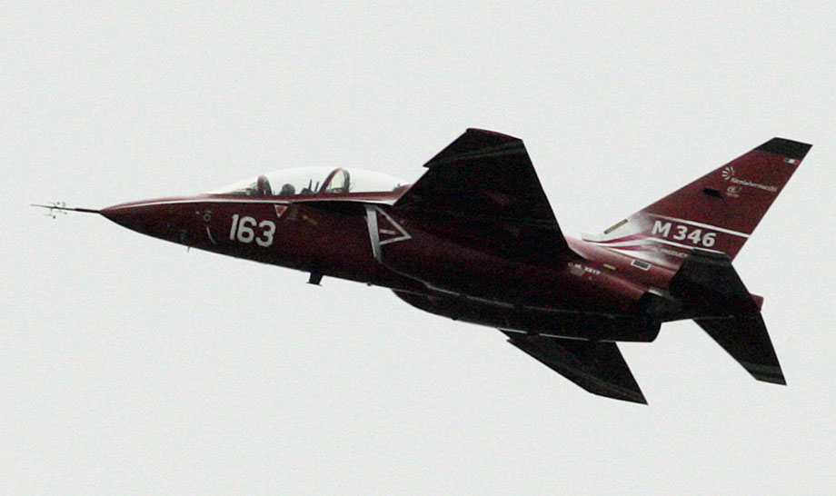 图为意大利M-346战斗机进行飞行表演。