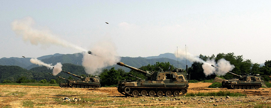 2009年6月18日,韩国陆军在江原道江陵市海岸一带举行防范入侵的海岸哨所军事演习。