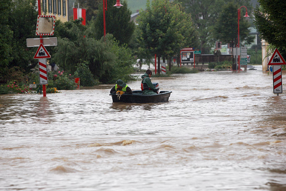 6月24日,奥地利部分地区由于连日降雨发生洪灾。当地消防人员紧急出动,用各种工具将灾民运往安全地带。