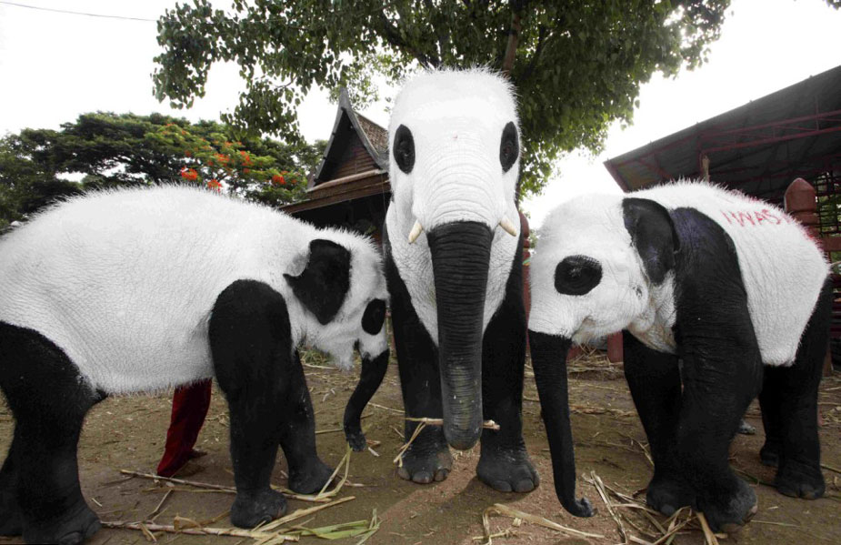 据英国媒体报道,近日,泰国因一只刚出生的熊猫陷入热潮,泰国还准备向公众征集熊猫幼崽的名字。几只大象也“妆扮”成熊猫的模样,借此吸引人们的关注。