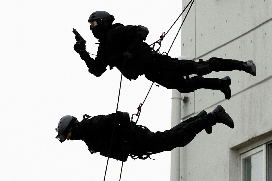 7月2日,韩国特警在韩国首都首尔市举行了反恐演习。韩国特警先后表演了一系列高难度动作,令人目不暇接。