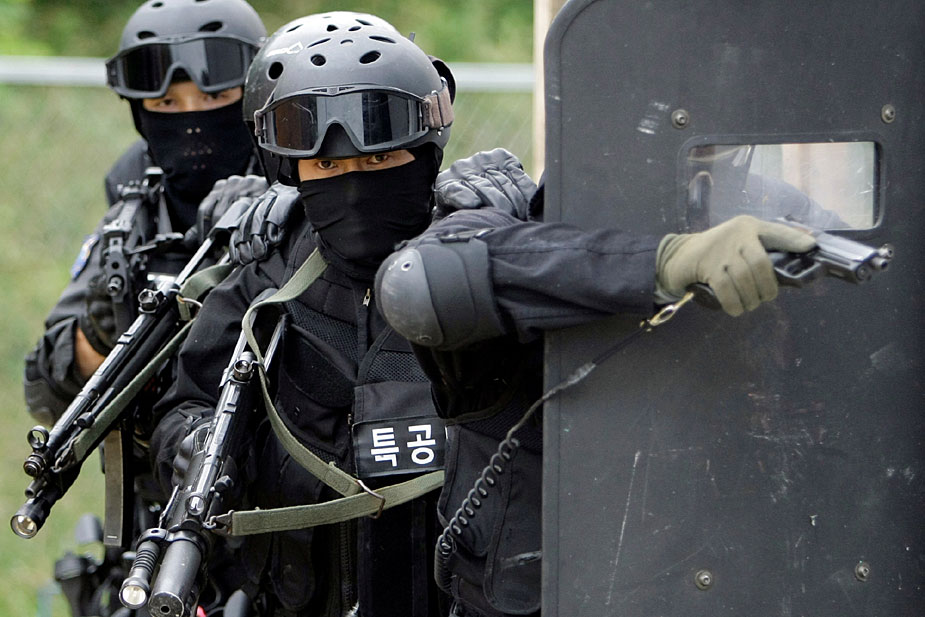 7月2日,韩国特警在韩国首都首尔市举行了反恐演习。韩国特警先后表演了一系列高难度动作,令人目不暇接。