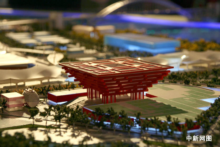 图为中国馆及周边场馆模型。