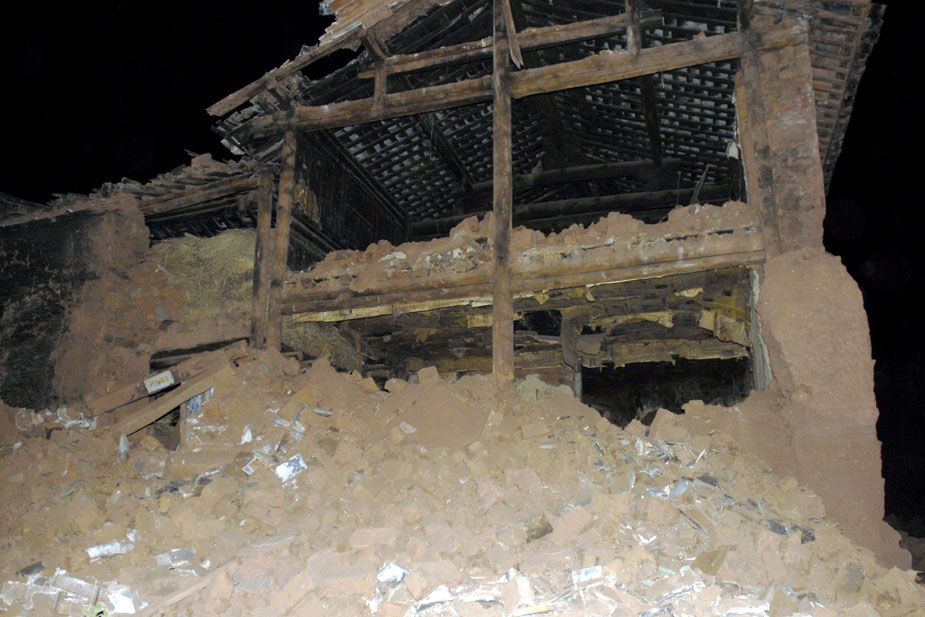 图为此次地震中受灾最为严重的官屯乡官屯村受损较为严重的民房。中新社发 保旭 摄
