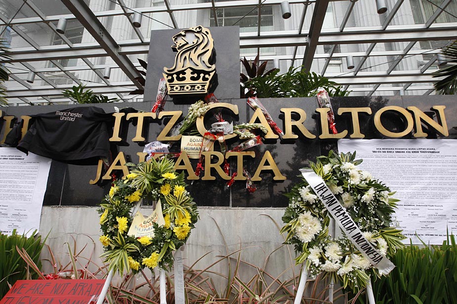 7月18日,印度尼西亚首都雅加达的民众纷纷来到发生爆炸的万豪酒店和丽嘉酒店,向死难者献花表示哀悼。