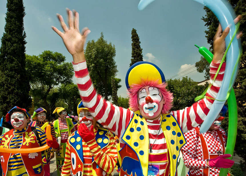 7月22日,几百名“小丑”聚集在墨西哥首都墨西哥城的街头参加一次小丑大游行,给人们带来了欢声笑语。