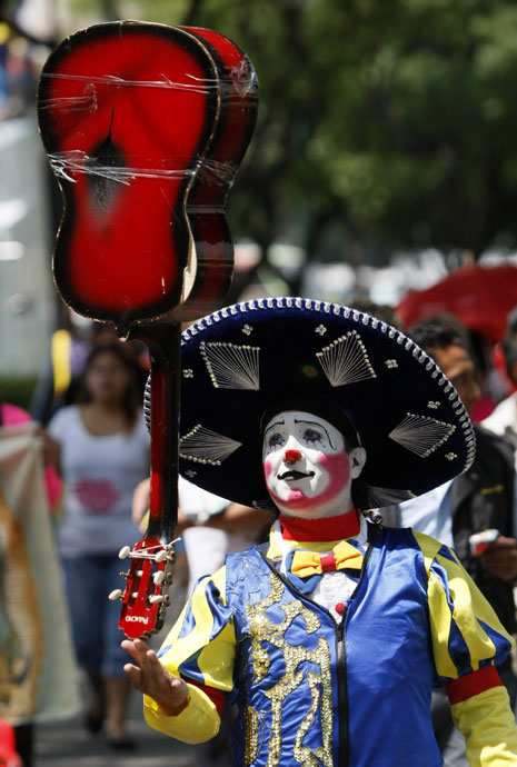 7月22日,几百名“小丑”聚集在墨西哥首都墨西哥城的街头参加一次小丑大游行,给人们带来了欢声笑语。