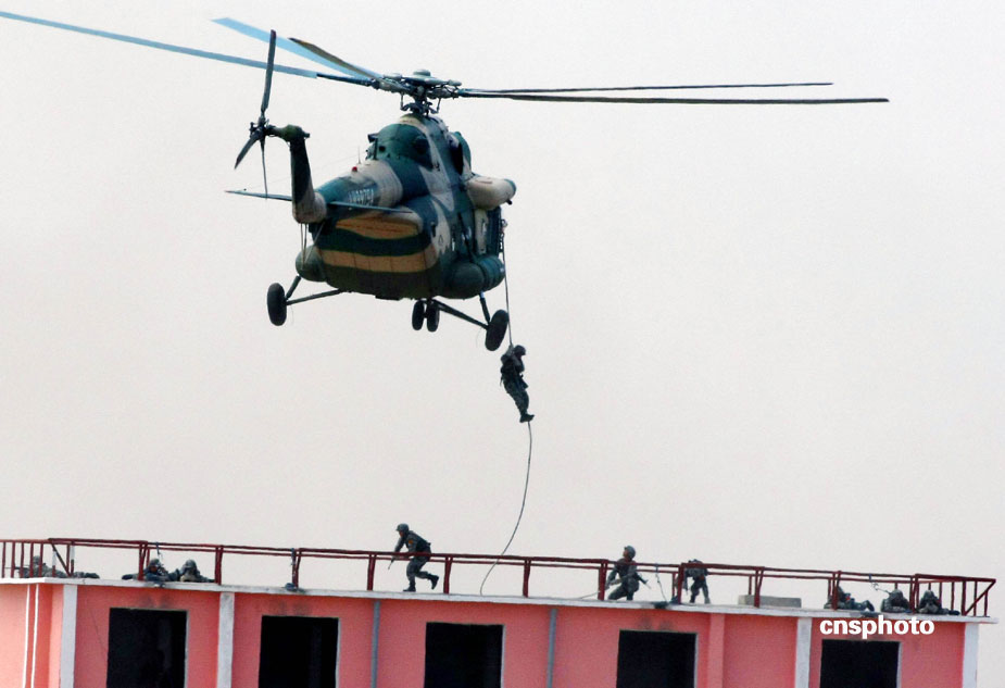 中国、俄罗斯两军总参谋长,7月23日上午到沈阳军区洮南合同战术训练基地,观看“和平使命2009”联合反恐军事演习。双方以陆军和空军为主,中方参演部队包括1个陆军战斗群和1个空军战斗群。俄方参演兵力包括1个陆军加强摩步营、1个空降突击连和部分空军兵力,双方投入兵力两千多人。中新社发 宋吉河 摄