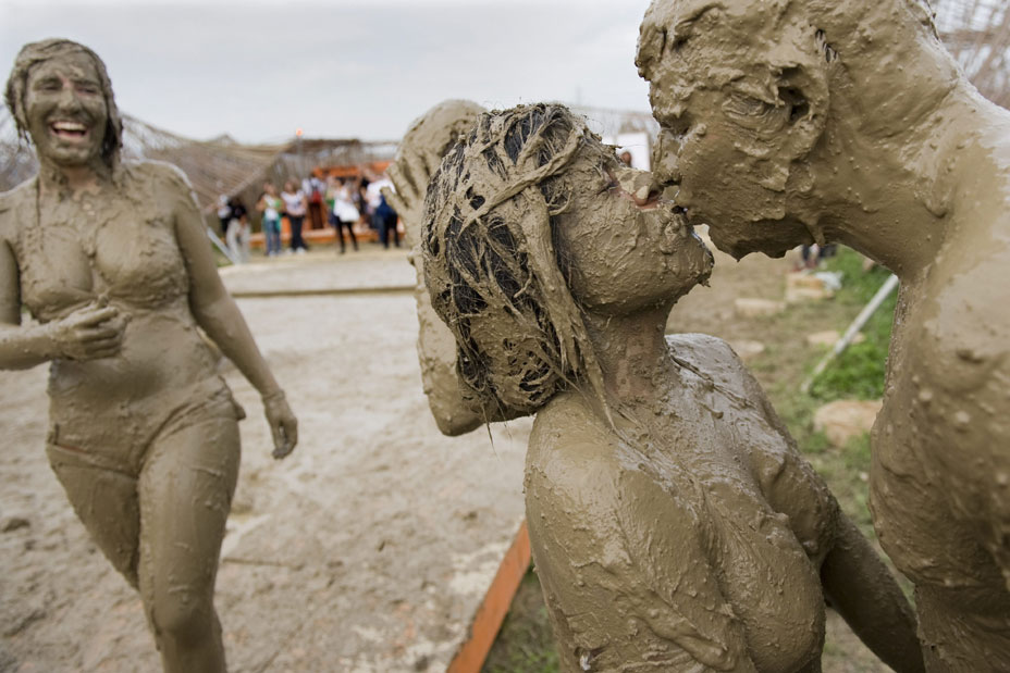 7月24日,在瑞士尼翁举行的第34届帕里奥音乐节上,狂热的音乐迷们在欣赏音乐的同时还尽情的享受了一下“泥浆浴”。
