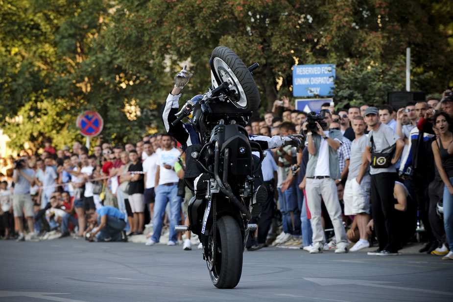 当地时间26日,德国著名的特技表演大师Chris Pfeiffer在科索沃地区的Pristina进行一场街头表演。