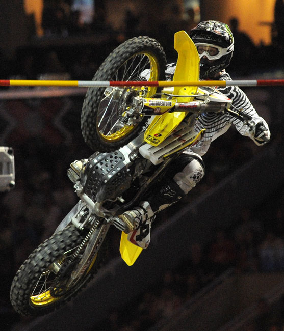 当地时间7月30日,美国洛杉矶举行了一场极限摩托大赛,各路好手上演了摩托车跨越高杆的精彩表演。