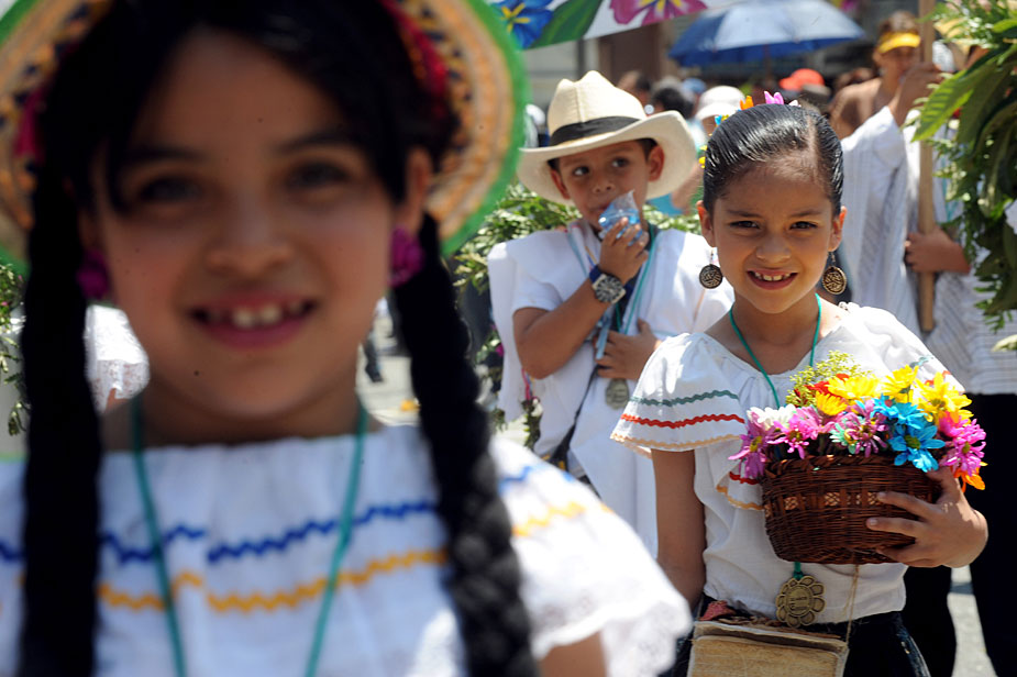 8月1日,在哥伦比亚麦德林,孩子们参加鲜花节游行。鲜花行业是哥伦比亚的主要产业之一。