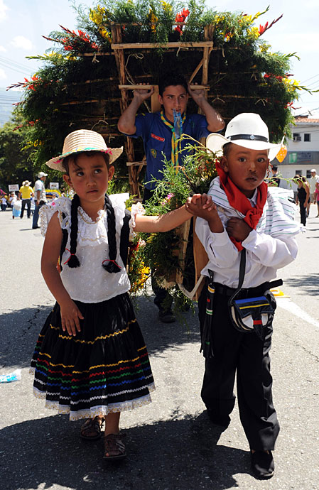 8月1日,在哥伦比亚麦德林,孩子们参加鲜花节游行。鲜花行业是哥伦比亚的主要产业之一。