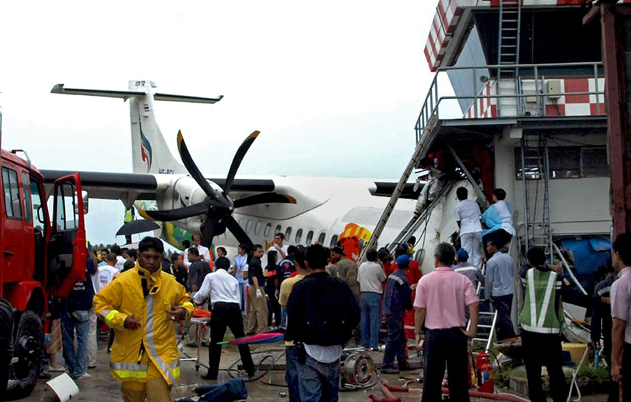 8月4日,曼谷航空公司一架客机在泰国南部苏梅岛机场着陆时冲出跑道,并与一座航空控制塔相撞。飞机上载有68名乘客和4名机组人员。
