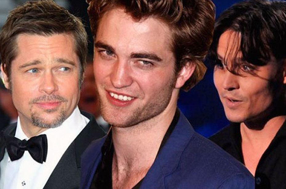 电影《暮光之城》中扮演邪性危险的性感吸血鬼而红透全世界的美男罗伯特·帕丁森(中)击败了众多强劲对手,最终登上了冠军的宝座。