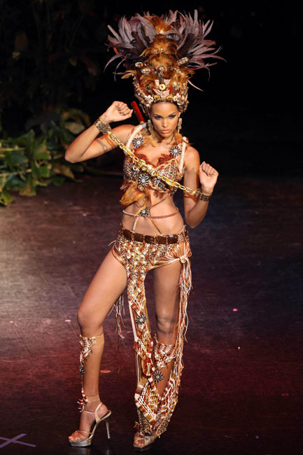 8月10日,2009年世界小姐大赛上,来自84个国家和地区的佳丽进行民族服饰的展示,各国佳丽分别穿着含有自己民族风格元素的时尚晚装亮相,现场顿时色彩斑斓,美不胜收。