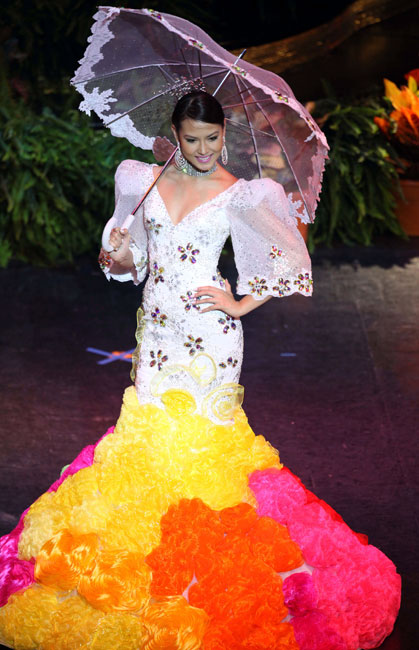 图为菲律宾小姐马纳洛演绎民族服饰。