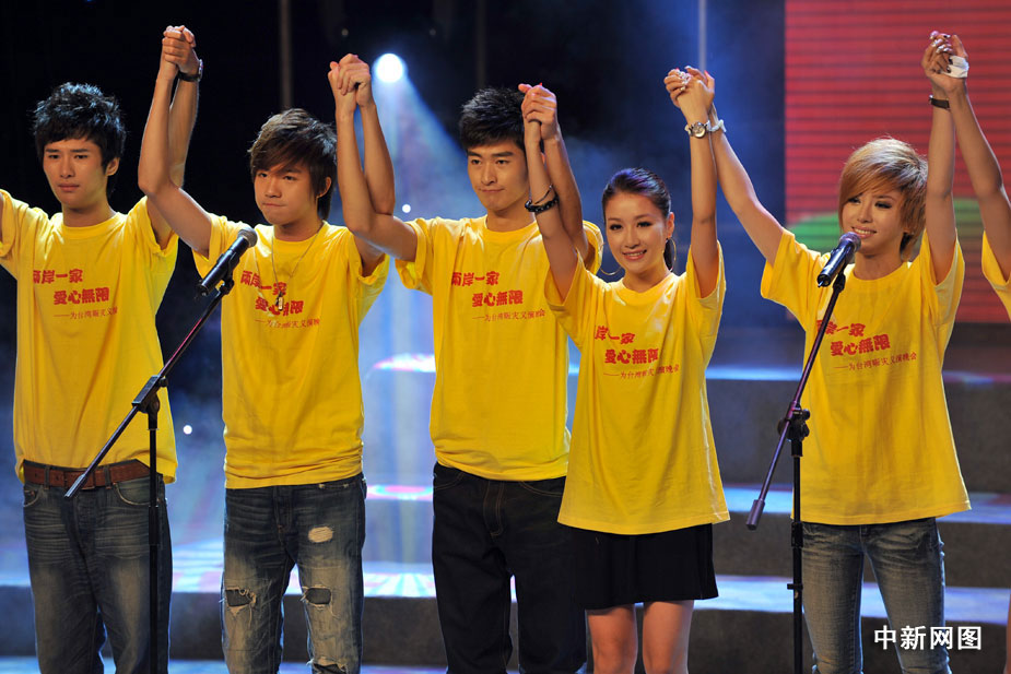 8月22日晚,北京举行“两岸一家 爱心无限”为台湾同胞赈灾义演晚会,大陆和台湾演艺界明星登台为台湾灾区同胞共献爱心,晚会临近结束时共收到各界捐款3000多万元。中新网记者 金硕 摄