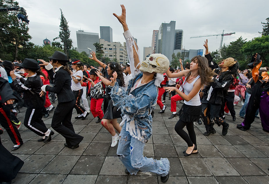 8月29日,逾万名墨西哥人在墨西哥城广场同时跳舞,用以纪念迈克尔·杰克逊第51个“生日”,同时也试图打破同时跳舞人数最的吉尼斯世界纪录。图片来源:中国新闻网