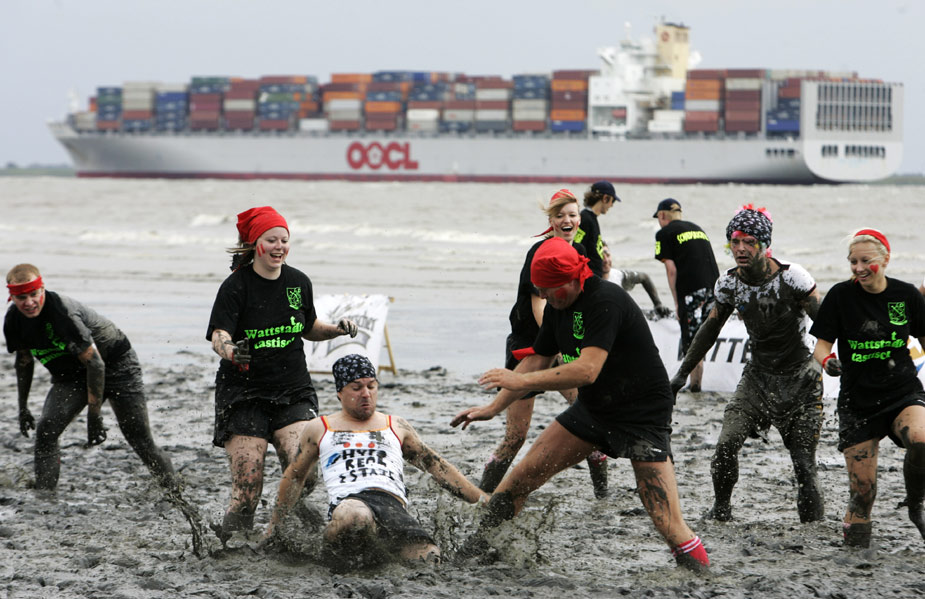 当地时间8月30日,德国北部海边小镇Brunsbuettel的泥滩上进行一场别开生面的泥地足球赛。男女“球员”混合在一起,泥地中尽情撒野,享受着不一样的乐趣。