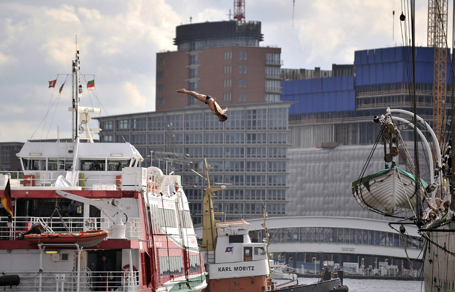当地时间8月29日,世界悬崖跳水系列赛在德国汉堡举行,吸引了众多高手前来参赛。
