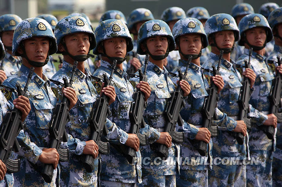 9月3日,解放军官兵在位于北京郊区的一处徒步方队阅兵村内训练。今年国庆节将举行新中国成立60周年国庆首都盛大阅兵仪式。来源:中国军网