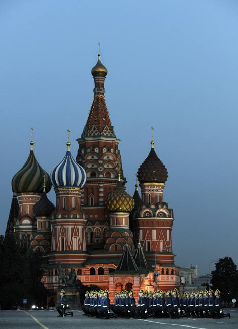 9月4日晚,俄罗斯莫斯科红场举行了俄罗斯国际军乐节开幕前夕的总彩排。首届俄罗斯国际军乐节将于9月5日至10日在莫斯科红场举行。图片来源:中国新闻网