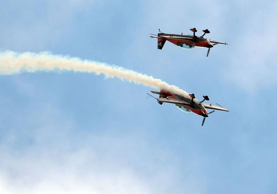 3日,英军一名现役军人进行特殊的飞行表演——他边喝茶,边驾驶飞机在空中翻了14个筋斗。此举意在为英国皇家空军协会的一个基金会筹款。图片来源:中国网