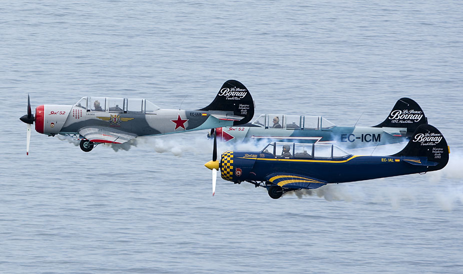 9月13日,西班牙南部加地斯地区举行了一场别开生面的飞行表演。这次飞行表演使用的是二战时期的老式飞机。图片来源:中国新闻网