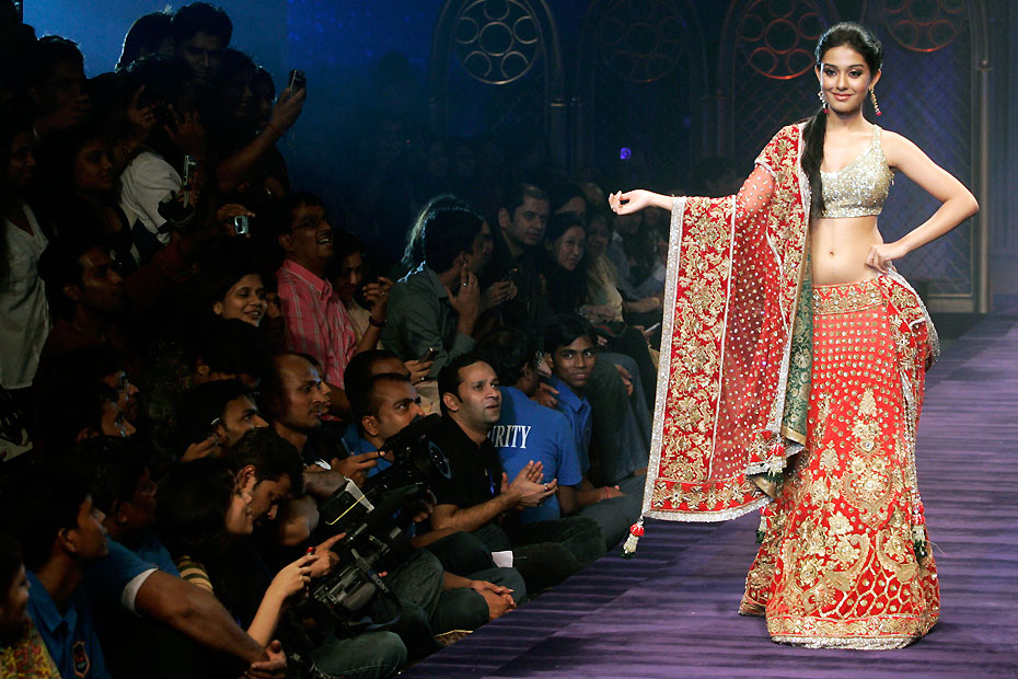 9月13日,主题名为“地球时装”的时装周在印度加尔各答开幕,时装周上模特们展示了设计师马尼什·马尔霍特拉的作品。来源:中国新闻网