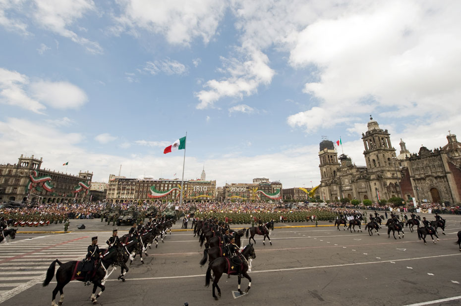 9月16日,墨西哥庆祝独立199周年,在首都墨西哥城的宪法广场举行了盛大的阅兵式。来源:中国新闻网