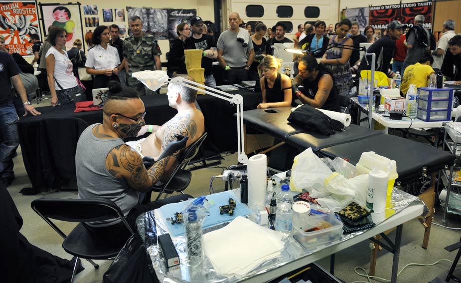法国巴黎9月20日举行“纹身艺术节”,吸引了成百上千纹身艺术大师到场献艺。图片来源:中国新闻网