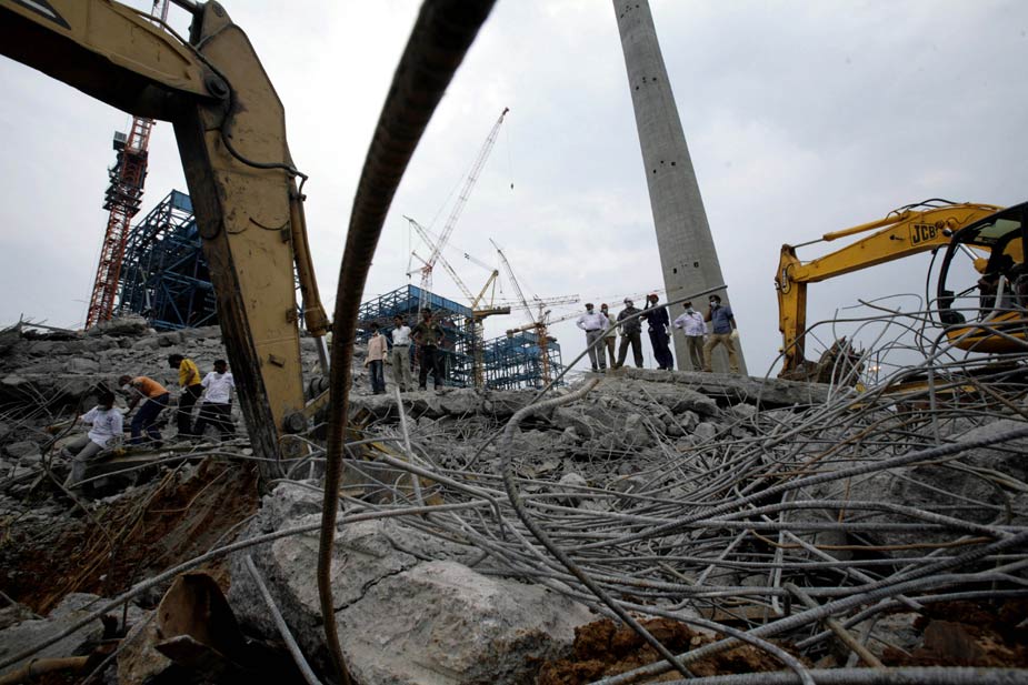 印度中部一座在建电厂的巨型烟囱23日下午发生倒塌,目前估计已有至少100人罹难。图片来源:中国新闻网
