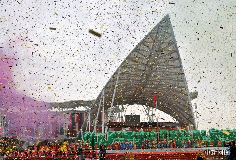 9月26日,第七届中国花卉博览会在北京顺义主场馆广场隆重开幕,现场彩带漫天飞舞“花雨”从天而降,以及异彩纷呈的表演成为一道丰盛的视觉大餐。中新网记者 金硕 摄