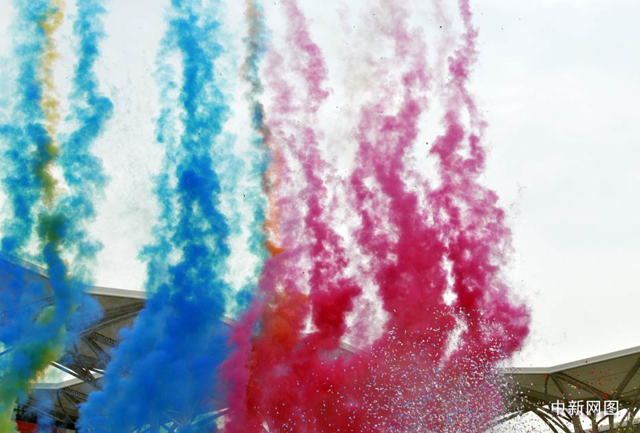 9月26日,第七届中国花卉博览会在北京顺义主场馆广场隆重开幕,现场彩带漫天飞舞“花雨”从天而降,以及异彩纷呈的表演成为一道丰盛的视觉大餐。中新网记者 金硕 摄