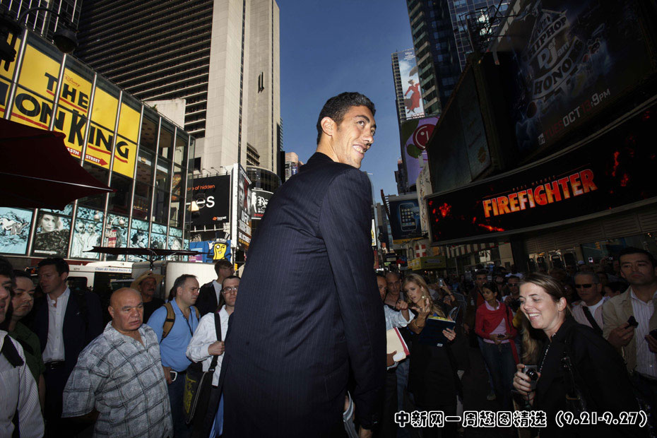 9月21日,身高2.465米的土耳其人柯森在美国纽约拿到了“世界第一高人”的吉尼斯世界纪录证书。图片来源:中国新闻网
