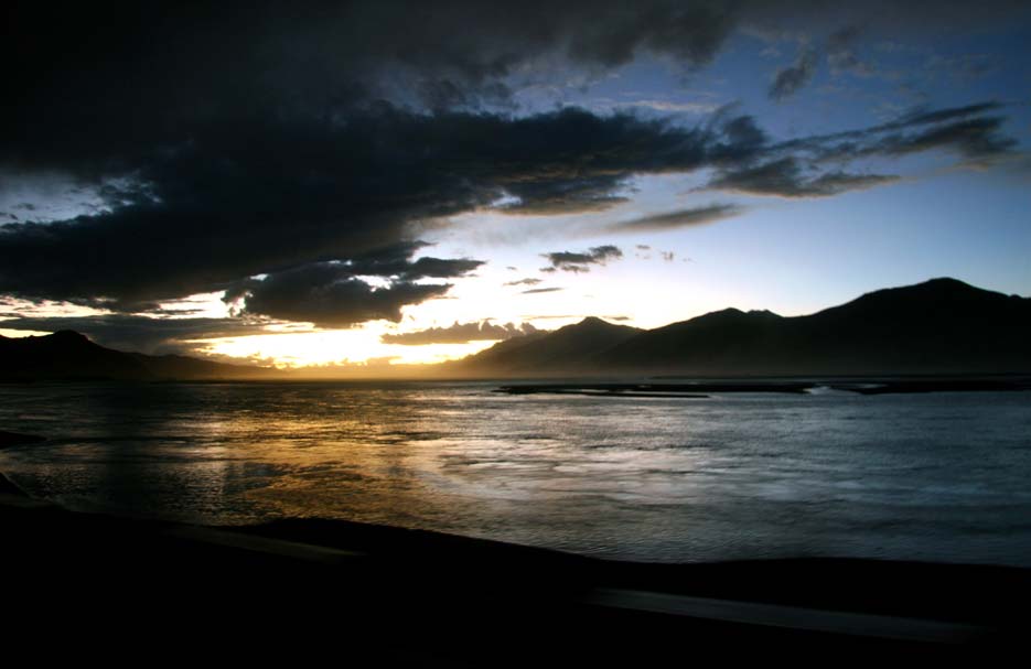 图为从山南到拉萨的路上见到的夕阳下的雅鲁藏布江。