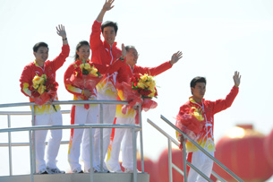 刘翔李宁亮相彩车