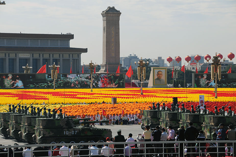 2009年10月1日,中华人民共和国成立60周年庆祝大会在北京天安门广场举行。图为履带自行榴弹炮方队。中新网记者 摄