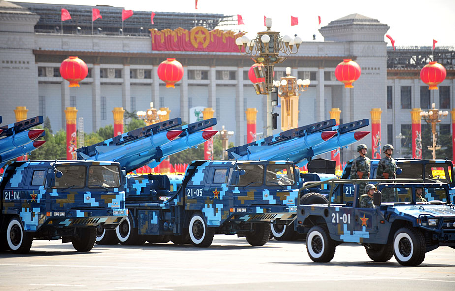 2009年10月1日,首都各界庆祝中华人民共和国成立60周年大会在北京天安门广场隆重举行。这是红-12地空导弹方队正在通过天安门广场。