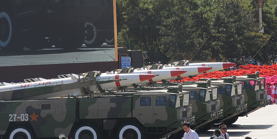 2009年10月1日,中华人民共和国成立60周年庆祝大会在北京天安门广场举行。图为某常规导弹方队。中新网记者 摄