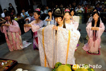 汉服爱好者祭拜月亮