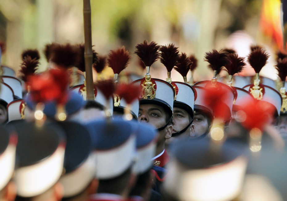 10月12日,西班牙国庆节当天在马德里举行了隆重的阅兵庆典仪式,西班牙陆海空和警察部队的3800多名官兵、200多辆战车及50多架战机参阅。图片来源:中国新闻网