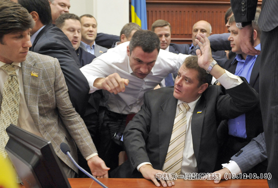 近日,在基辅地方议会上发生了令人不快的一幕。现年38岁的维塔利·克里琴科与人发生激烈争执,还起了肢体冲突。图片来源:中国新闻网