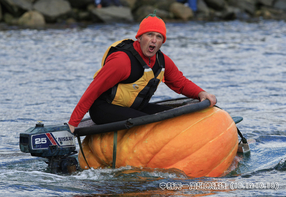 在美国佛蒙特州伯灵顿,传统的佛蒙特南瓜赛舟会吸引了数以千计的民众前来参赛。图片来源:中国新闻网