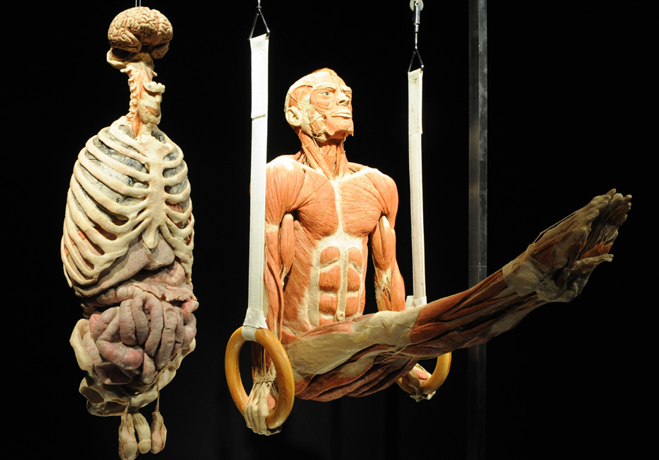 近日,德国解剖学家巩特尔·冯·哈根斯制作的人体解剖模型在新加坡科学中心展出。图片来源:中国新闻网