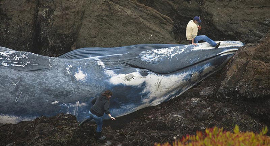 近日,在美国加州海岸附近,一头体长21.3米的雌性巨型蓝鲸被途经的轮船撞击致死。10月20日这头蓝鲸的尸体被海水冲上了海岸。