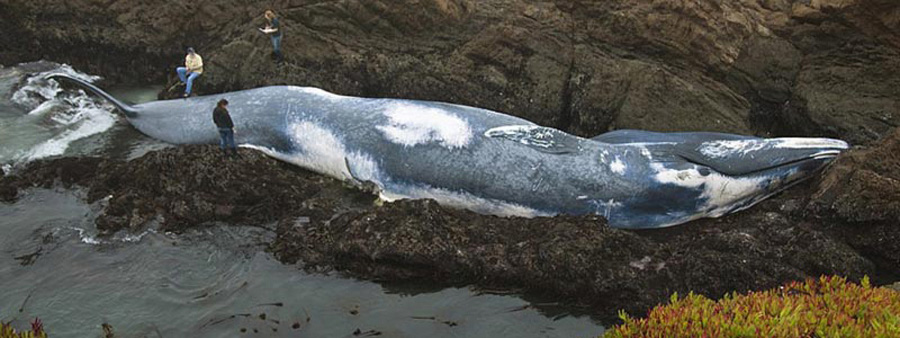 近日,在美国加州海岸附近,一头体长21.3米的雌性巨型蓝鲸被途经的轮船撞击致死。10月20日这头蓝鲸的尸体被海水冲上了海岸。
